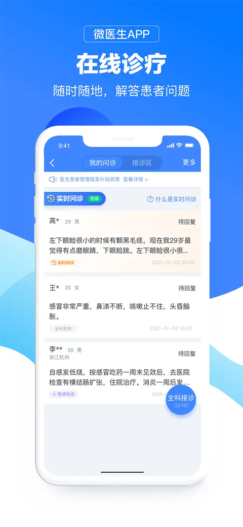 为患者提供在线的图文、电话、视频问诊服务;