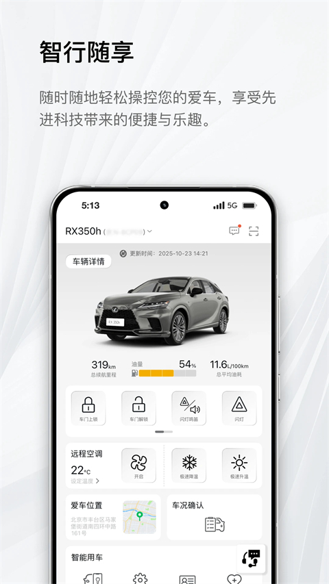 eLEXUS CLUB app对于搭载完整版 LEXUS G-BOOK智能副驾/LEXUS Connect智行互联服务的车型,可查看车辆油耗、行驶里程、状态,并可远程设置车辆电子功能、车辆门锁和危险告警灯。对于电动车型,还可远程操作空调、远程充电、充电桩检索。