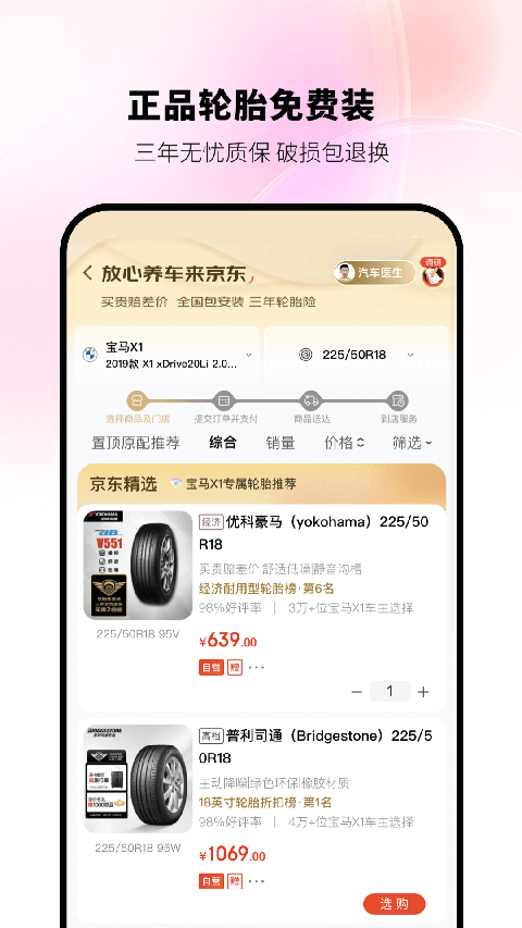 轮胎免费装,三年无忧质保!百万轮胎在线选,正品保障,透明报价,输入车型即可自动适配。超多门店包安装,破损包退换,为消费者权益保驾护航。